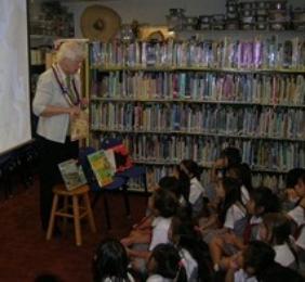 Sharing with girls at St. Andrews Priory in Honolulu my version